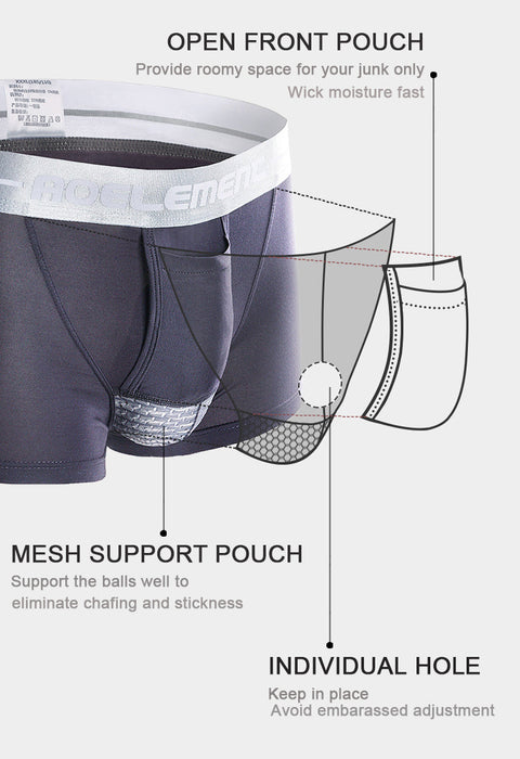 - The upward front pouch is with 3 opens which wicks moisture much faster than normal underwear. It also provides enough space for your penis so it can move with you for complete freedom; no more stickiness, no more readjusting.
