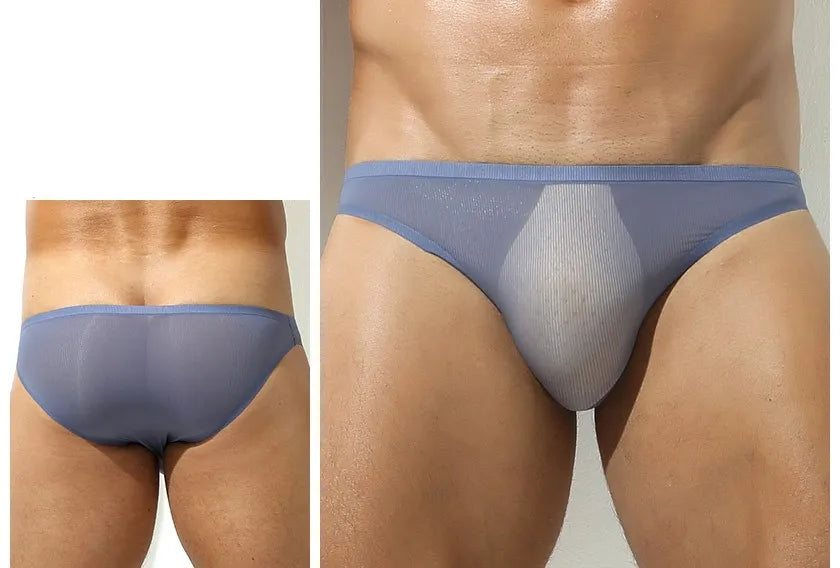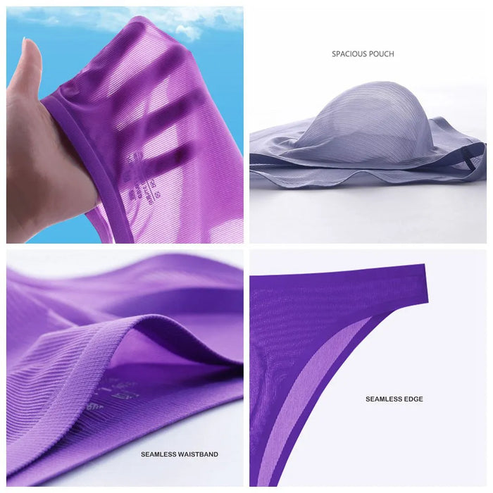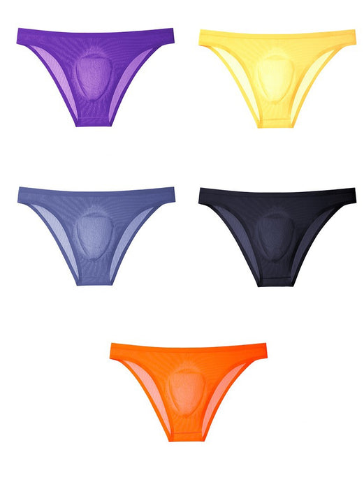 3D Seamless Pouch - Men's Ultra Thin Ribbed Ice Silk Briefs (5 Pack) - JEWYEE 805